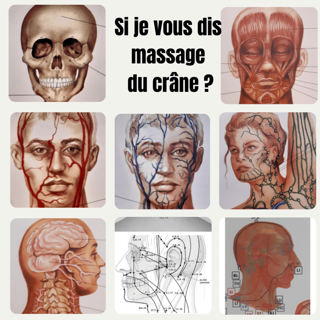 De nombreuses personnes ne réalisent pas à quel point les muscles du visage et du cuir chevelu peuvent accumuler des tensions. Le stress, les expressions répétées (comme froncer les sourcils) et même le fait de mâcher peuvent provoquer des douleurs et des tensions dans ces zones. Le massage cranio-facial permet de relâcher ces muscles, soulageant ainsi les douleurs faciales, cervicales, et parfois même des douleurs dans la mâchoire (comme dans le cas du bruxisme).